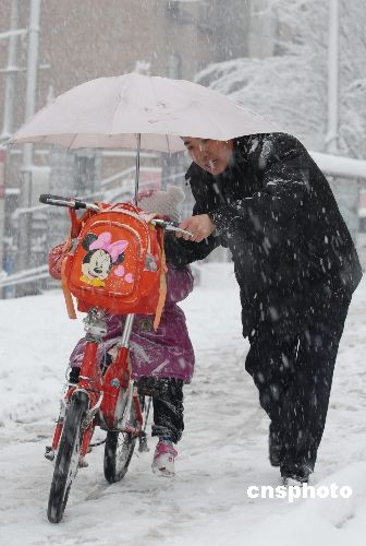 3月19日傍晚至20日,新疆乌鲁木齐气候突变,一场罕见的大雪替代了春雨,令刚沐于春色暖阳的边城市民猝不及防。中新社发 张新军 摄