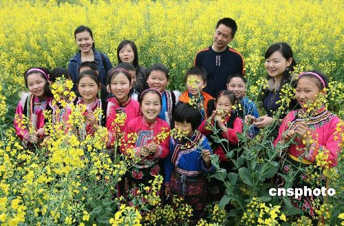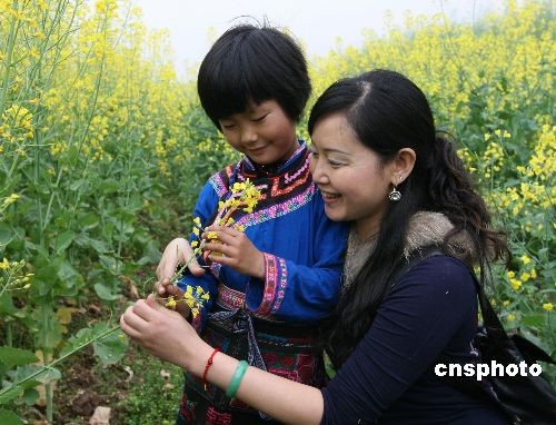 3月22日,广安市爱众公司团委组织该公司的10名爱心妈妈与在广安与异地复课的地震灾区孩子一起沐浴春光过周末,让灾区孩子在春游中体验广安人民对他们无私的关爱。中新社发 廖小兵 摄