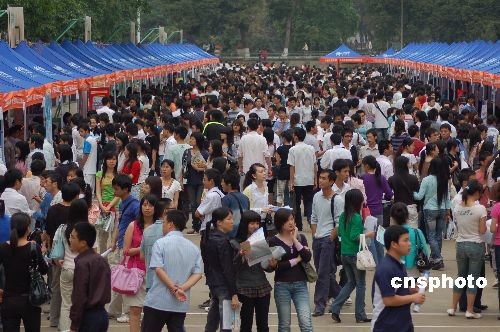 3月24日,广西举行促进大学毕业生就业公共服务系列活动启动仪式暨广西民族大学专场招聘会。中国广西人才市场将招聘会设在了大学校园,约5000名即将毕业的大学生参加招聘会。据悉,2009年在广西毕业的大学生预计达13万人,就业压力空前。为此,广西人事厅将采取多种措施,在广西各大学进行专场招聘和一系列就业公共服务活动,零距离为毕业生提供服务。中新社发 刘万强 摄