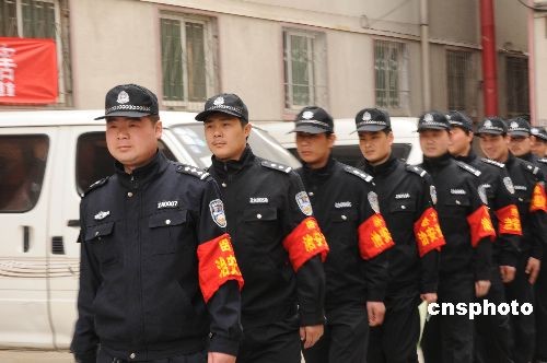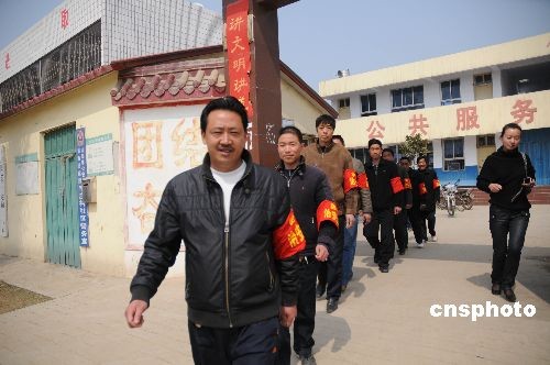 3月25日,两支主要由返乡农民工和大学生村官组成的治安巡逻队奔赴河南省南阳市卧龙区武候街道的城乡“战场”。去年以来,武候街道共吸纳150名返乡农民工和大学生村官,组成城乡治安巡逻队,对城市社区和农村乡镇实行24小时不间断治安巡逻。巡逻队员每人每月可获得300元的岗位补助,而且,周六、周日和节假日还可享用二至三倍的加班费。 中新社发 付海厚 摄