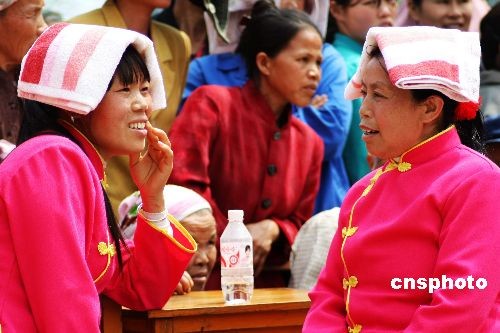 3月29日,广西凤山县袍里乡坡心村附近的乡、村、屯群众,聚集在凤山国家地质公园三门海景区举行山歌比赛,壮、汉、瑶民族群众纵情歌唱。当日是壮族传统歌节“三月三”,凤山县各族群众举行了对山歌、赛球、拔河等各种娱乐活动,欢度传统节日。中新社发 周恩革 摄