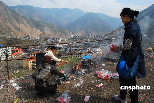 清明前夕,一些北川人陆续回到北川县城祭奠在地震中遇难的亲人。中新社发 胥辉 摄
