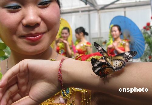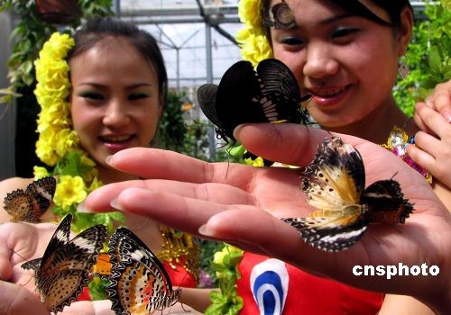 4月1日,位于北京植物园内的热带蝴蝶生态园正式开园,数千只色彩斑斓的蝴蝶和数十种千奇百怪的虫子将正式与游客见面。热带生态蝴蝶园是中国内地首次从马来西亚槟城蝴蝶园进口的集昆虫蝴蝶标本、活体昆虫展示和活蝴蝶放飞为一体的具有知识性、趣味性、科普性、教育性的昆虫蝴蝶科普生态园,也是国内第一家进口的活体蝴蝶和昆虫品种最全、规模最大、蝴蝶昆虫标本最多科普展。热带蝴蝶生态园共分为三个展区:蝴蝶馆、昆虫馆、科普标本馆。图为蝴蝶生态园吸引游客。中新社发 钱兴强 摄
