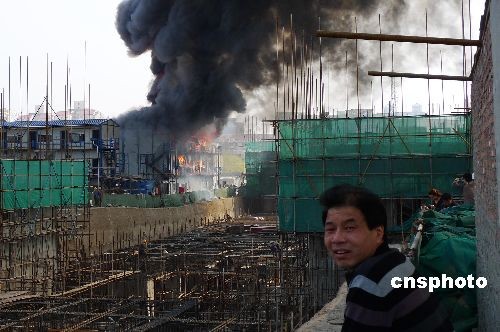 4月4日,由中国建筑一局集团承建的、位于永定门地区的北京松林里危改小区工程工地工棚发生火灾,腾起数十米的浓烟。十余辆消防车迅速前往现场救火,失火原因及伤亡情况尚不明了。中新社发 毛建军 摄