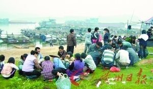 昨天下午4时许,记者在现场看到,300多名三水大塘的渔民聚集在北江边。此后,村民登上已等候在北江边的大船,乘船过江前往江河对面的大坑山墓群,那里就是林姓家族祖先墓穴之处。祭拜持续40分钟左右结束,随后村民乘船过江返回。