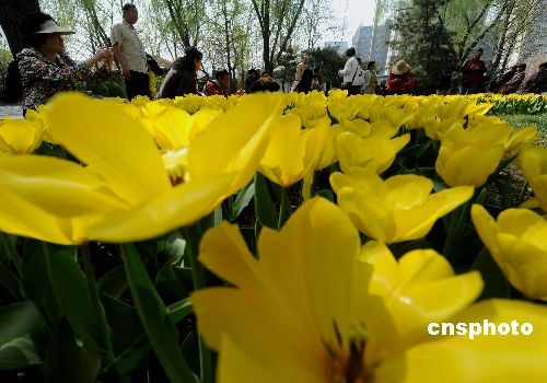 北京市民踏青观赏郁金香
