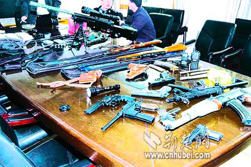 昨日,记者拿起一支仿真手枪,站在10米开外轻松击穿10多张报纸。警方介绍,今年34岁的陈某是青山某企业工段长,曾当过兵,酷爱军械。这些“军火”大多是他从网上买来的