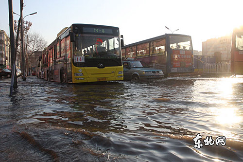 7日下午,网友刘峰向本网报料:15时许,哈尔滨市道外区南通大街与东直大街路交口附近,因施工导致供水管线出现爆裂,致使街路汪洋一片。大量的积水挡去了行人的去路,一些人力三轮车做起生意来,每拉一位一元钱。17时许,漏水点被控制住,街路上的积水渐渐减少。由于交警在现场疏导车辆,没有造成大面积堵车。