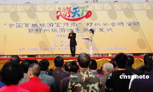 图为4月11日上午9点,数万郑州市民争领旅游优惠券。据悉,国家旅游局于4月11日至17日在全国186个城市开展“全国百城旅游宣传周”活动,3个月内郑州将发放100万份总价值达值30亿元的旅游优惠券,每套券面优惠达3000元。中新社发 贾建伟 摄