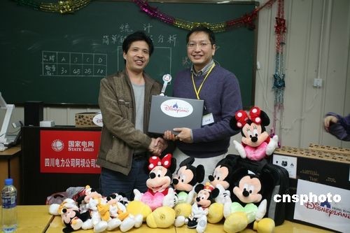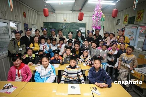 4月10至12日,香港迪士尼乐园度假区行政总裁金民豪率义工来到四川,并与香港工程界社促会、“5·12青年工程师大联盟”代表团一道,前往德阳袁家小学与汶川映秀小学开展“持续关爱之旅”,为两所小学的学生送去欢乐,并捐赠12部笔记本电脑。中新社发 晓冬 摄