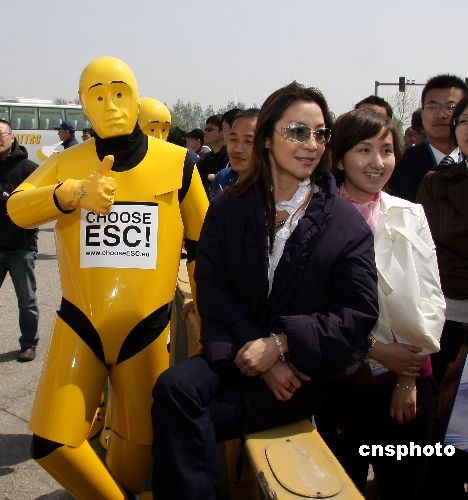 4月16日,杨紫琼在北京交通部公路交通实验场出席“国家道路交通安全科技行动计划体验活动暨国际汽联汽车电子稳定控制展示”活动,并担任全球道路安全宣传大使。本次活动主题为“在中国推广拯救生命的技术--电子稳定控制(ESC)”。中新社发 张爱东 摄