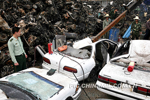 为严打冒牌武警车辆交通违法行为,有效防止报废车辆回流社会,4月12日上午,武警广东省总队深圳市支队警备司令部对近期查获的假冒武警号牌车辆进行集中销毁。 陆建东 摄
