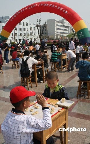 4月18日,在山东博兴县文化广场,136名当地中国象棋爱好者参加了山东省“全民健身,共享全运”万人中国象棋博兴赛区比赛。比赛分为成人、少年儿童两个组别。为了弘扬“和谐中国,全民全运”,营造喜迎“十一运”的良好社会氛围,山东省在全省范围内组织举办了“全民健身、共享全运”万人中国象棋比赛。 中新社发 陈 彬 摄