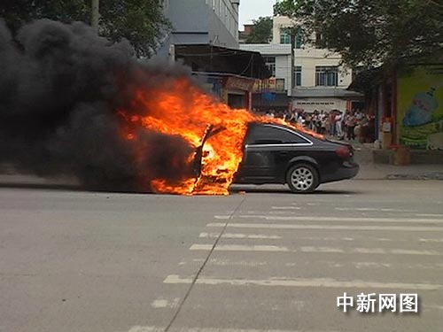中新网防城港4月25日电 (周红华)4月25日上午10时许,一辆奥迪“A6”小轿车在行驶到广西东兴大道采珠市场路段时突发火灾,随后大火迅速蔓延,名车顿时葬身火海。经防城港市消防支队港口中队8名官兵奋力扑救,成功将火灾扑灭。