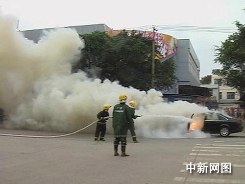 面对耀眼的火焰和随时可能发生爆炸的危险,现场指挥员立即下达命令:划清警戒线,防止无关人员和车辆的过往及靠近,同时迅速铺设水带进行扑救。由于着火车辆正处于猛烈燃烧阶段,为防止发生爆炸带不必要的伤害,消防官兵们占据上风方向远距离出一支水枪进行灭火。火苗在强大水压的冲击下,明火被迅速得到控制。