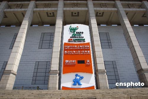4月26日,上海世博会倒计时牌在北京中国国家博物馆前揭开神秘面纱,吸引不少游客目光。该倒计时牌将于2009年5月1日上海世博会倒计时一周年之际正式启动。中新社发 郑雄增 摄