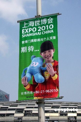 4月27日,上海世博会事务协调局局长洪浩透露,2009年3月27日开始预售团体门票,今年7月1日开始预售个人门票。上海世博会运营资金总预算为106亿元,其中60亿元将来自门票收入。图为上海街头2010世博会门票即将向个人发售的广告宣传画。中新社发 周东潮 摄