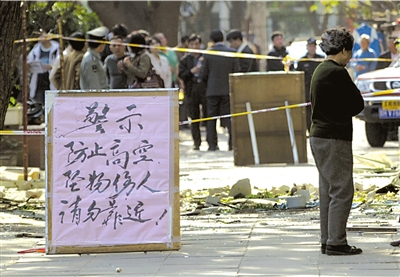 “像是地震,太可怕了!”住在3层的大妈脸色惨白,向众人讲述事发一幕。她说,当时正在看电视,突然听到“嘭”的一声巨响,感觉大地一抖,听到玻璃破碎和石头砸落的声音。