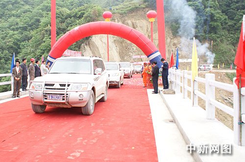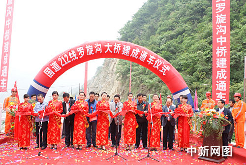 4月30日,位于甘肃省陇南市境内的国道公路罗旋沟中桥竣工通车。这是汶川大地震后,灾区第一座重建竣工通车的国道桥。2008年8月5日下午16时,国道212线罗旋沟中桥在6.1级强余震中垮塌,使得甘川两省交通大动脉一度中断。王彦阳 路明 摄