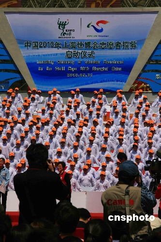 2009年5月1日,上海世博会志愿者招募启动仪式在东方明珠塔广场举行,预计招募世博志愿者17万人。 中新社发 黄家明 摄