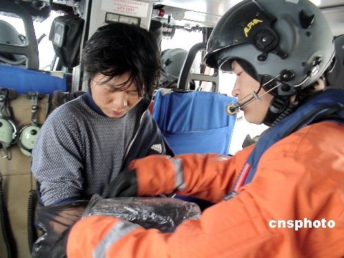 5月8日凌晨,交通运输部北海第一救助飞行队蓬莱救助值班室接到山东省海上搜救中心电话:在青岛东南150海里附近海域,“鲁胶渔706”渔船上一船员胳膊绞断大量出血,处于昏迷状态,急需接到陆地救治。凌晨5点10分左右,一架救助直升机紧急从蓬莱飞行基地起飞。在青岛流亭机场补充燃料后,直飞救助海域,于7点37分,到达救助现场。10分钟后,重伤渔民被成功救上直升机。上午8点56分,救助直升机平安降落青岛流亭机场,等候在机场的医护人员迅速把病人抬上了急救车。目前,该病人正在青岛一家医院接受救治。中新社发 小荧 摄