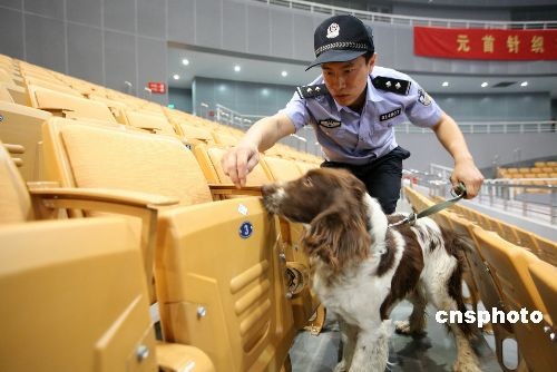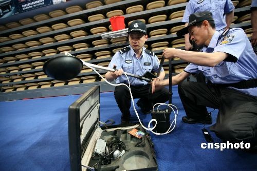 5月10日上午,山东济南公安局组织治安搜排爆、反恐、特警等警力对济南奥体中心体育馆进行全面搜排爆检查。从5月10日中午开始, 济南奥体中心将全面封闭,进入场馆的所有人员、车辆都将接受严格的安全检查。中新社发 潘永强 摄