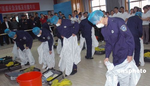 5月10日,针对当前全球甲型H1N1流感疫情的严峻形势,河南省安阳市疾病预防控制机构开展防控甲型H1N1流感应急演练及技能考核活动。活动旨在提高疾病防控工作人员的防控意识,做到当疫情真正来临时,能沉着冷静面对,迅速、及时、高效地做出反应。 中新社发 常中正 摄