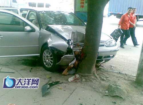 记者在现场看到,肇事车撞上榕树后才停了下来,挨着榕树的一辆三轮车和钢筋护栏被撞出几米远。事故中共有5名伤者,其中肇事车上有2名伤者。伤者分别被送往南方医院、武警医院和一五七医院救治。