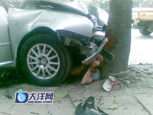 事发时,徐师傅正在档口吃饭,“砰”地一声巨响,差点将他手中的碗筷震落。他冲出来一看,一位少女被压在银灰色轿车的下边,甚至没有呻吟声,便动弹不得了;一位40岁左右男子左腿生生被压断,躺在血泊里呻吟,另一位25岁左右的女子抓住他的手,叫他救救她。
