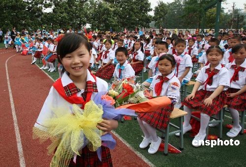 5月11日下午,曾在“5·12”大地震中被严重损毁的重庆梁平县文化镇中心小学(现名“重庆梁平县英利育才小学”)的学生们,举行主题为“感恩·立志·幸福成长”的少先队主题活动,纪念地震一周年。中新社发 郭晋嘉 摄