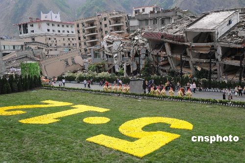 5月10日,北川老县城。“5·12”四川汶川大地震即将一年,这一年留给人们不尽的伤痛与哀思;这一年每个中国人时刻在关注着北川,关注着四川地震灾区,全国人民向四川地震灾区伸出援助之手。中新社发 刘书亭 摄