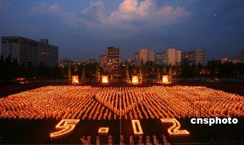 5月11日晚,江西省宜春职业技术学院举行纪念“5.12国际护士节”活动,3000余名护理专业学生戴上洁白的燕帽,点燃手中的蜡烛,传递着“燃烧自己,照亮别人”的南丁格尔精神,纪念“5.12国际护士节”。中新社发 邹海斌 摄