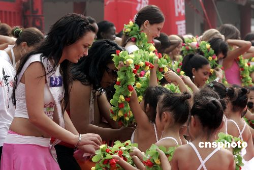 七月二十七日,二零零七国际旅游小姐总决赛参赛佳丽来到河南安阳,在安阳举行了隆重的入城仪式。中新社发 慎重 摄