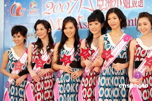 9月24日,12位参加亚洲小姐竞选的港澳赛区候选佳丽,在香港都会海逸酒店与评判及传媒会面,经过一轮角逐,结果7号佳丽李怡燃、8号佳丽张海燕及9号佳丽黄倩婷获晋身五强,进入总决赛。中新社发 洪少葵 摄