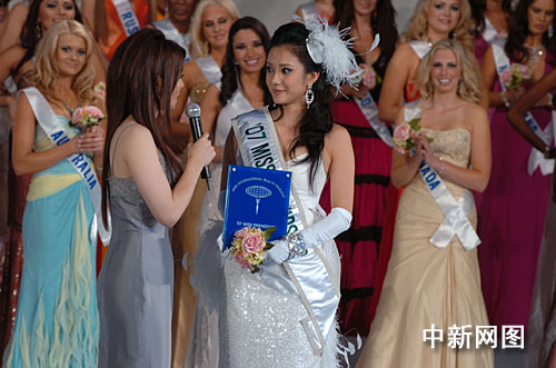 香港小姐王君馨获得友谊小姐奖后回答主持人的问题 作 者:滕剑峰