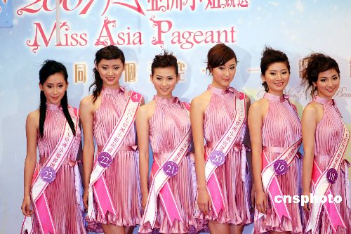 10月23日,入围2007亚洲小姐竞选总决赛的23名佳丽在香港登台亮相,与大会评判团会面。由香港亚洲电视举办的2007亚洲小姐竞选总决赛将在28日晚举行。中新社发 洪少葵 摄