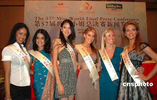 十一月六日,第五十七届世界小姐总决赛组委会在三亚举行第一次新闻发布会。目前已经有一百零五名佳丽抵达三亚,还有选手将陆续抵达,本届赛事参赛选手将创历史纪录。中新社发 尹海明 摄