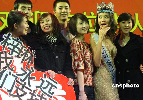 12月20日晚,首位夺得世界小姐桂冠的中国佳丽张梓琳从英国回到北京,中国新丝路时尚机构举行了盛大欢迎会。图为在欢迎会上世姐张梓琳兴高采烈与朋友欢聚。张梓琳在三亚参加第57届世界小姐总决赛夺冠后,随世姐机构赴英国参加了一系列慈善活动和新闻会。