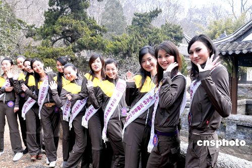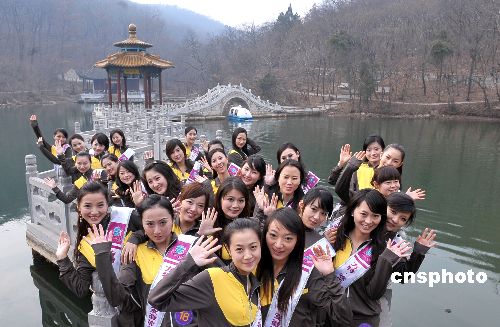 1月3日,安徽首届旅游小姐选拔赛的30名决赛选手来到滁州琅琊山国家森林园,开展“魅力新旅游,美丽俏佳人”活动,展示美景与美女交融的场景,在节日中演绎无限风情。中新社发 王家国 摄