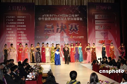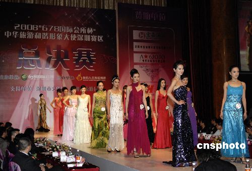 2009年1月4日晚,中华旅游和谐形象大使深圳赛区总决赛,在广东深圳福田大中华喜来登酒店圆满收官。本次大赛以 “东方神韵,世界和谐” 为主题,以倡导“健康生态旅游”为宗旨,整合深圳自然资源和人文内涵,推广区域旅游,推动了旅游文化专业赛事向国际化发展。中新社发 闫晋 摄