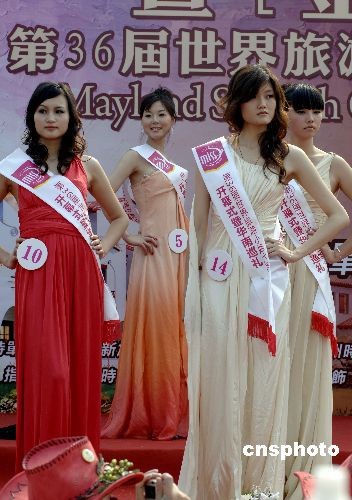 5月2日,第36届世界旅游小姐大赛开幕式及华南巡礼启动仪式在广州花都举行,全国各省赛区的30位世界旅游小姐选手云集,成为一道靓丽的风景线。中新社发 刘卫勇 摄