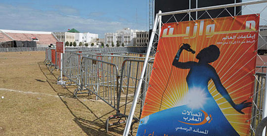 这是5月24日在摩洛哥首都拉巴特发生踩踏事故的体育场拍摄的音乐会海报。