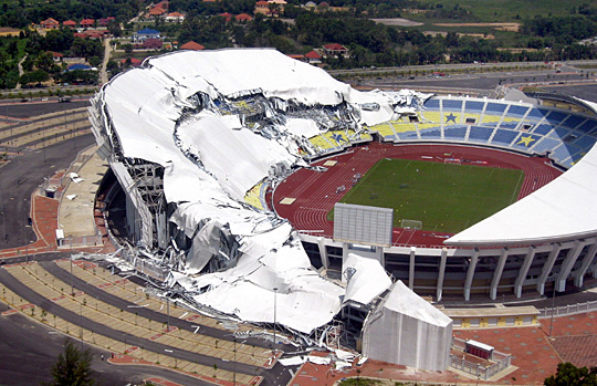 6月2日,一座位于马来西亚丁加奴州的体育场发生半边顶棚垮塌事故。这座发生垮塌事故的体育场建成仅一年,目前马来西亚有关部门正在对事故原因进行调查。