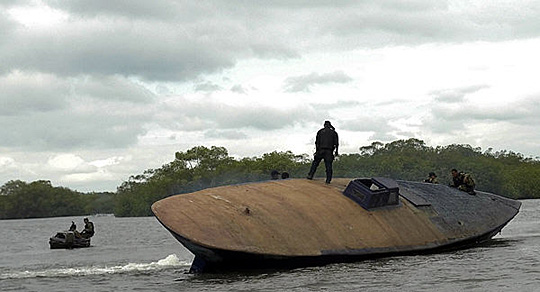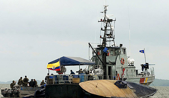 6月4日,哥伦比亚海军查获一艘贩毒用潜水艇。这艘被查获的潜水艇属于半潜船,在水面上能看到它的小部分船体。今年以来,已有12艘此类贩毒潜水艇在哥伦比亚落网。