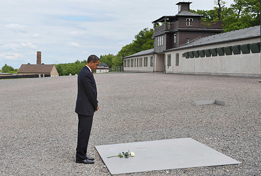 6月5日,美国总统奥巴马当日来到位于魏玛的布痕瓦尔德集中营纪念碑进行参观,并向纪念碑献花。