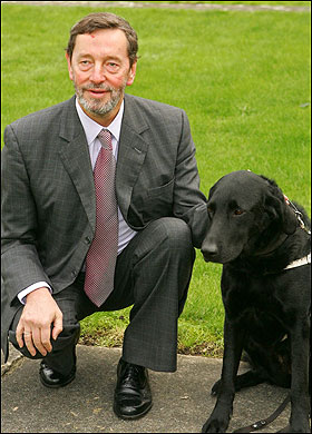 62岁生日当天,英国首位盲人大臣——前内政大臣戴维·布伦基特牵着自己的导盲犬外出散步,没想到竟然遭到一头母牛的“突袭”。为保护爱犬,布伦基特被砸断一根肋骨。谈及此事,布伦基特直呼“太惊险了”!