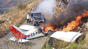 6月7日下午,南非约翰内斯堡当地30岁女子莫尼卡·布拉甘卡驾驶一辆福特小货车在克鲁吉斯多普机场附近的一条公路上行驶,汽车上还坐着另外一名叫做安娜·瓦林娜的女子和一名名叫托尼的男子。当莫尼卡驾车行驶时,她突然看到天空中有一架轻型飞机,正朝她的小货车笔直地俯冲下来!由于汽车行驶的公路非常狭窄,莫尼卡根本来不及避让这架从天而降的轻型飞机!