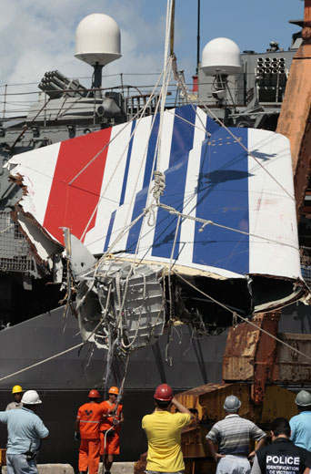 6月14日,被打捞上来的法航失事客机残骸运抵巴西东北部城市累西腓。巴西军方也在当日宣布,随着法国军舰上的遗体被转交到巴西军舰上,打捞上来的法航失事客机遇难者遗体已增加到49具。