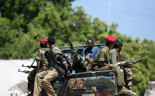 6月22日,索马里总统谢赫谢里夫·谢赫·艾哈迈德宣布国家进入紧急状态。图为索马里政府军士兵21日在首都摩加迪沙巡逻。