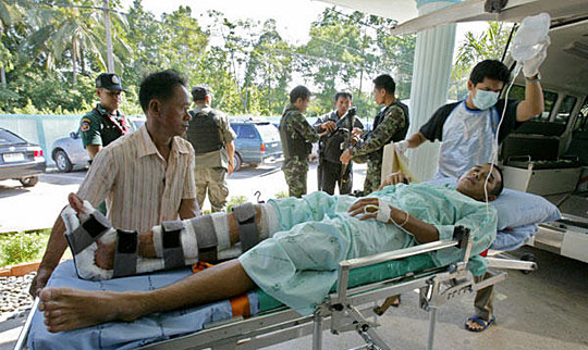 爆炸中的伤者被送往泰国南部北大年府一家医院。